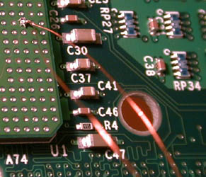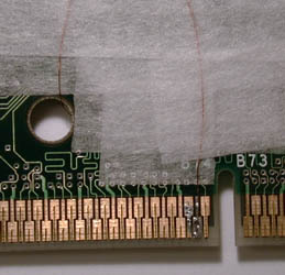 The copperwire we used was 0.13 mm thick. Soldering iron tip 0.4 mm. We also used surgical tape for securing isolation and fixation.